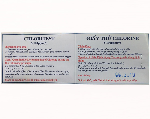 Là dạng giấy mỏng dùng để thử trong dung dịch chứa chlorine, căn cứ sự biến đổi theo bảng màu để xác định nồng độ chlorine có trong dung dịch